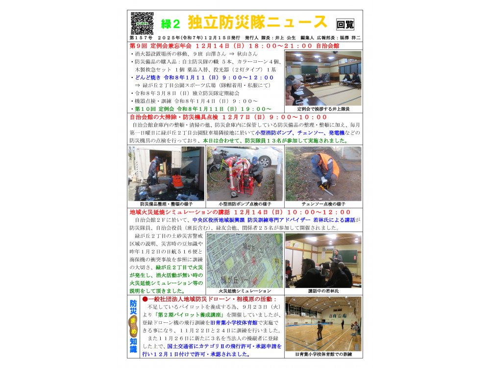 【緑が丘2】独立防災隊ニュース 第157号 発行されました