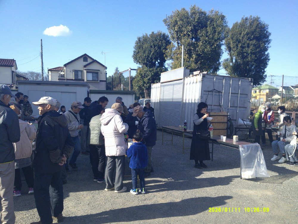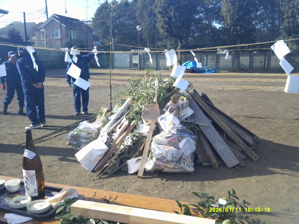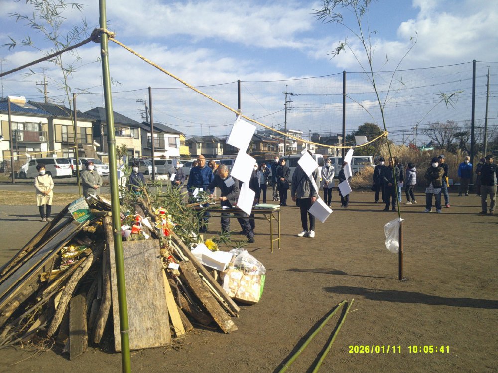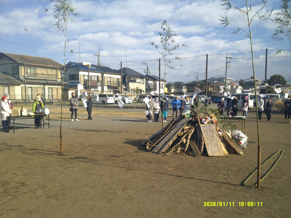 2026年1月11日(日)ふれあい広場にて、5丁目自治会、虹ヶ丘自治会共同で恒例のどんと焼きが行われました。