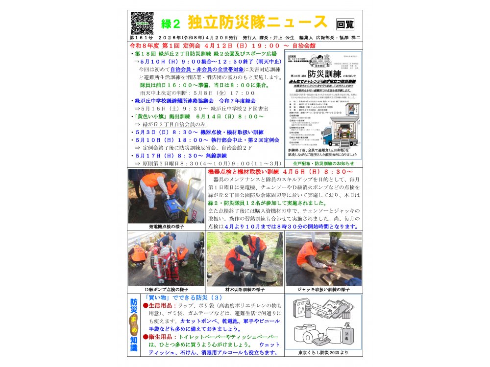 【緑が丘2】独立防災隊ニュース 第161号 発行されました