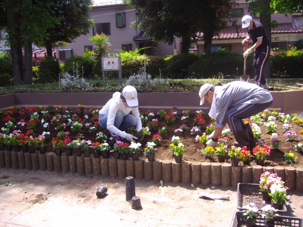 5月28日「花の町づくり」として環境部が中心となり三役も加わり、第1公園に花を植えました。今見事に咲いています。散策等のおり是非お寄りください。